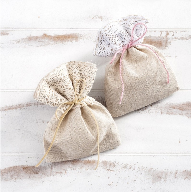 - Μπομπονιέρα γάμου Πουγκί Λινό με Δαντέλα Π001