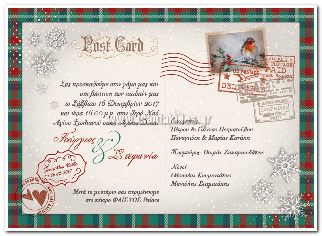Το θέμα του προσκλητηρίου προσαρμόζεται σε διάφορα σχήματα (πάπυρος, κάρτα και σετ με φάκελο). Δείτε τα σχήματα στις φωτογραφίες του δείγματος.