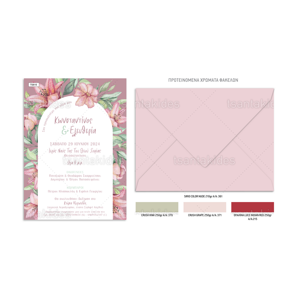 Προσκλητήριο γάμου σε Dusty pink lilly flowers.