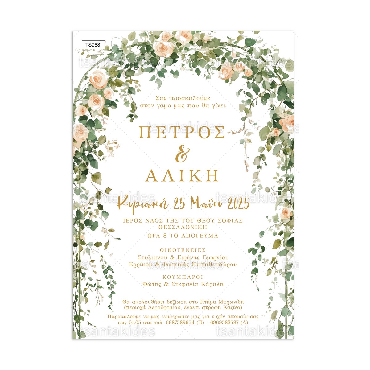 - Στοιχεία Προσκλητηρίου: Στo πεδίο με το κείμενο συμπληρώστε τα στοιχεία του προσκλητηρίου (κείμενο, ημερομηνία, εκκλησία, ονόματα, δεξίωση κλπ).