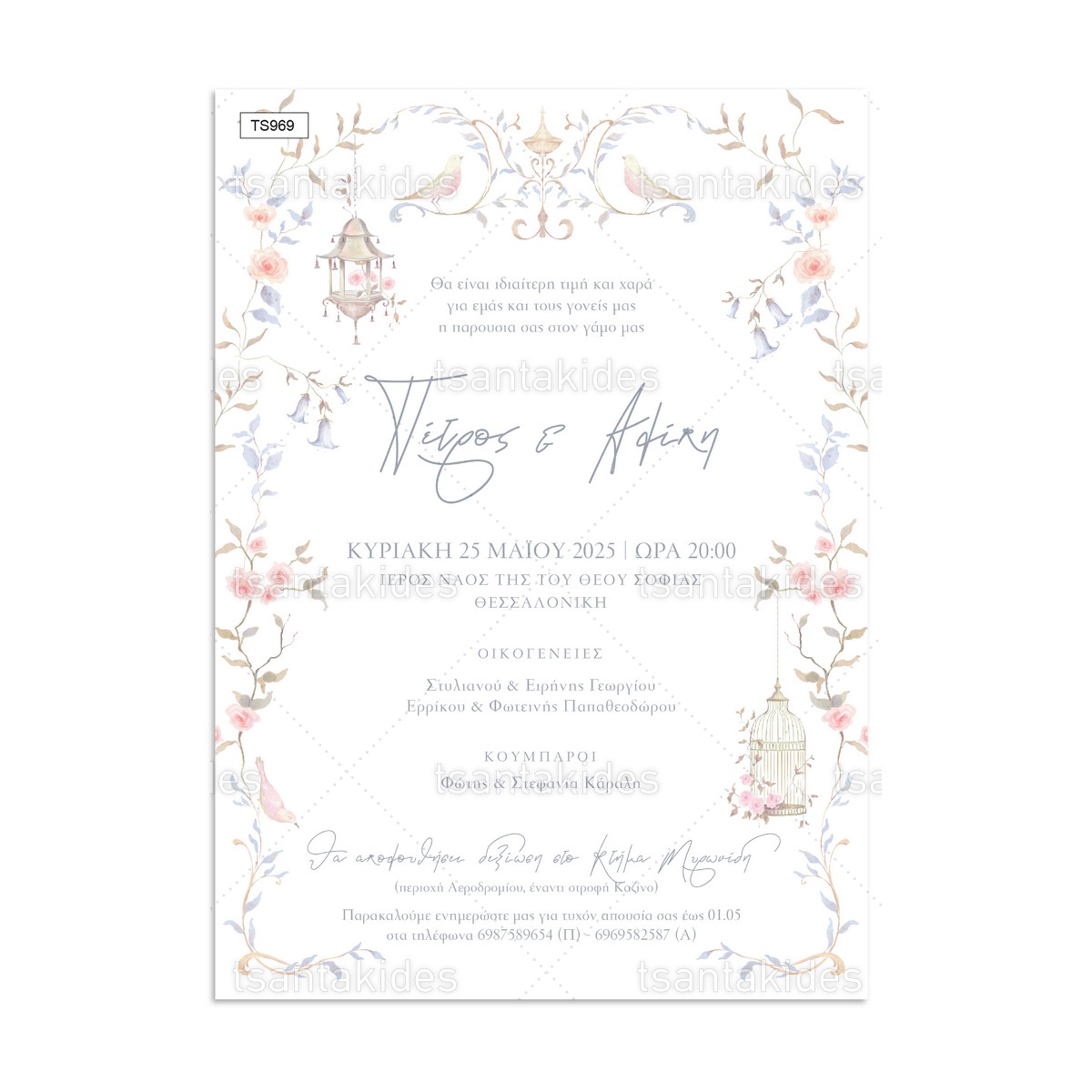 - Στοιχεία Προσκλητηρίου: Στo πεδίο με το κείμενο συμπληρώστε τα στοιχεία του προσκλητηρίου (κείμενο, ημερομηνία, εκκλησία, ονόματα, δεξίωση κλπ).