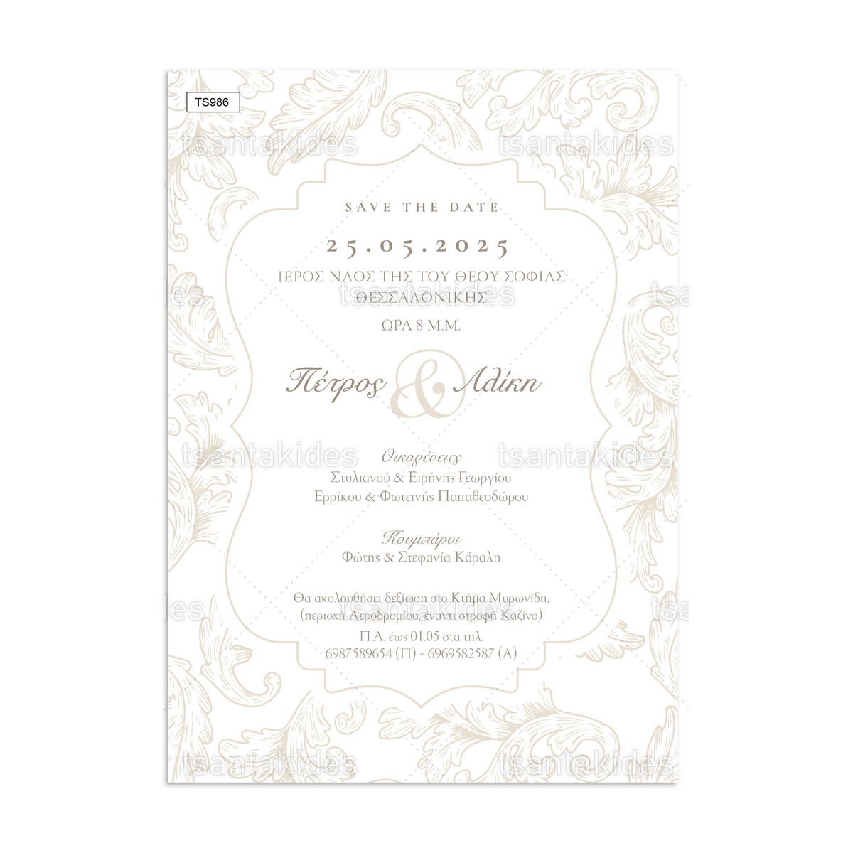 - Στοιχεία Προσκλητηρίου: Στo πεδίο με το κείμενο συμπληρώστε τα στοιχεία του προσκλητηρίου (κείμενο, ημερομηνία, εκκλησία, ονόματα, δεξίωση κλπ).
