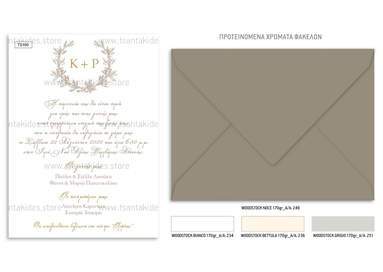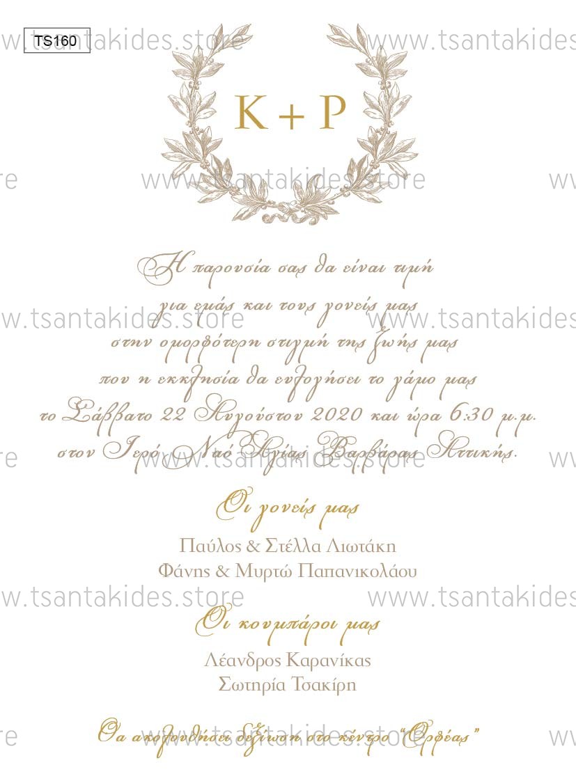 Προσκλητήριο γάμου με λογότυπο σε στεφανάκι.