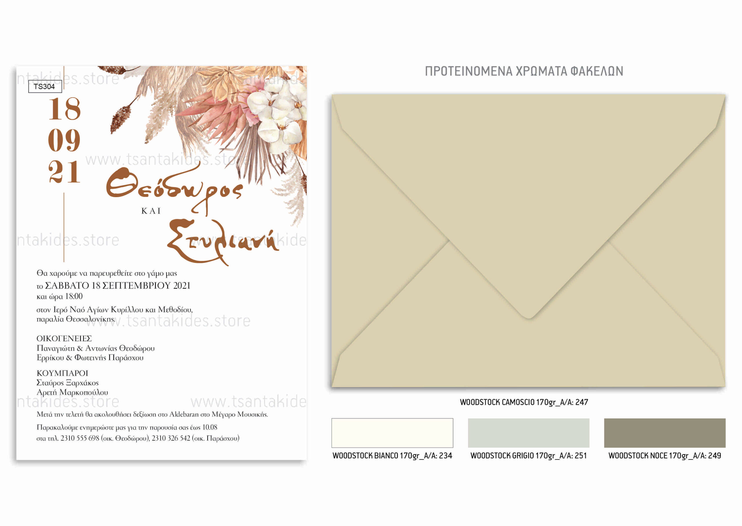 Προσκλητήριο γάμου με θέμα τα dried flowers και τα pampas.