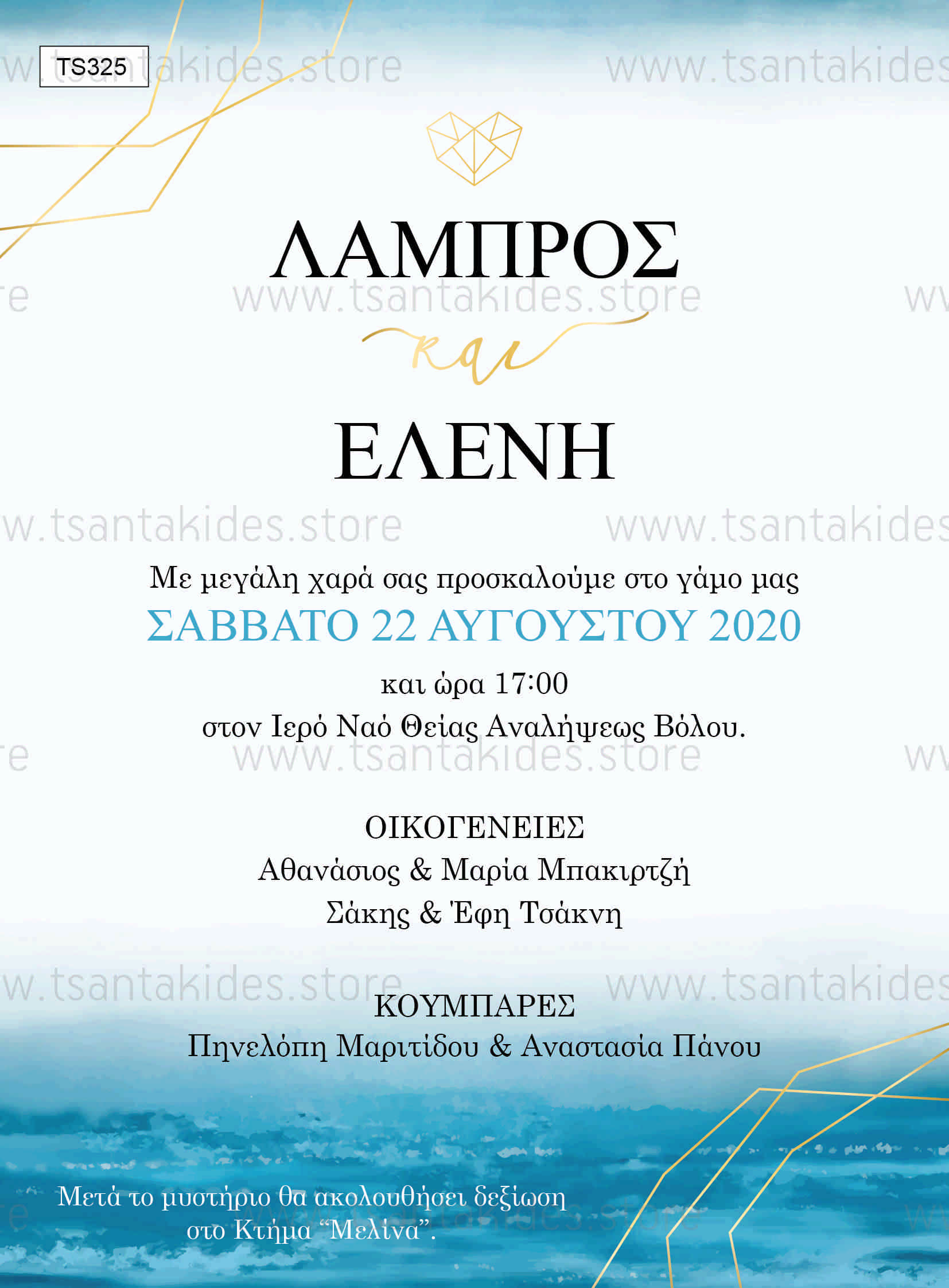 Προσκλητήριο γάμου σε navy blue χρωματισμούς.