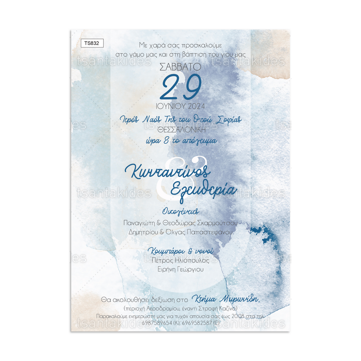 Προσκλητήριο γάμου & βάπτισης σε Abstract watercolor.