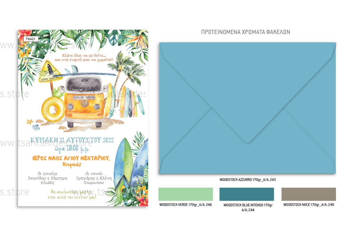 Προσκλητήριο βάπτισης για αγόρι με θέμα Surf.