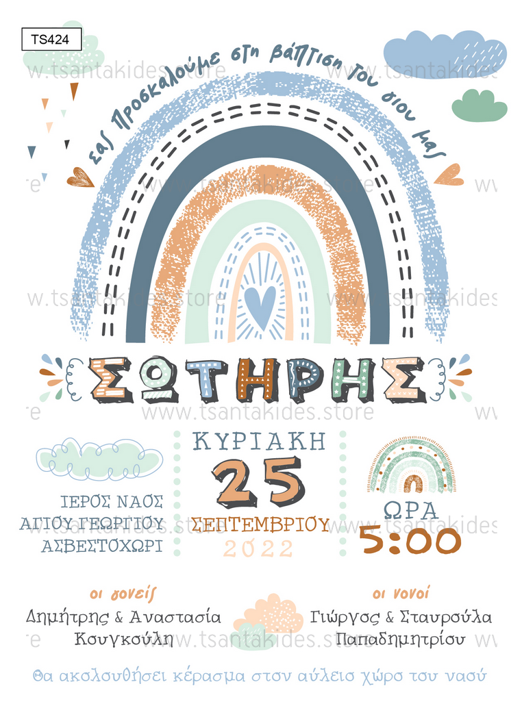 Προσκλητήριο βάπτισης για αγόρι με θέμα Rainbow Boy.