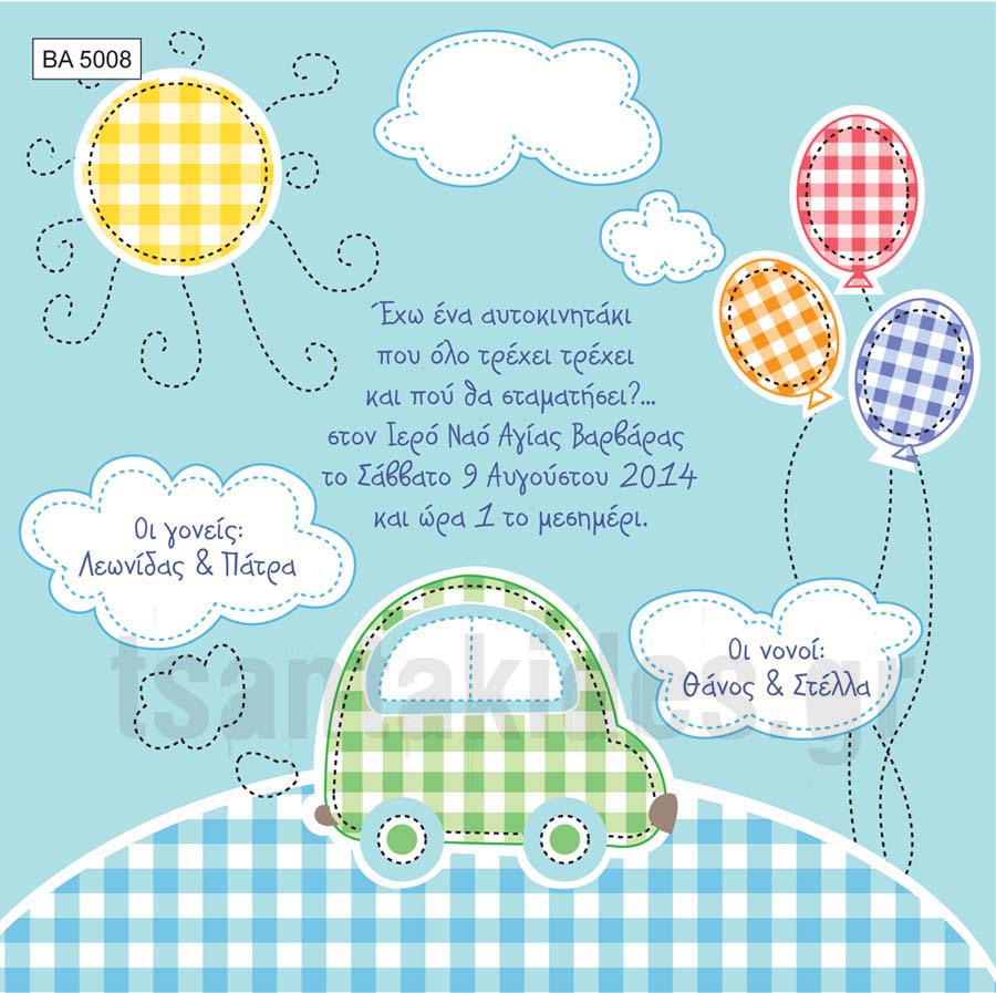 Προσκλητήριο Βάπτισης ΒΑ-5008 Αυτοκίνητο