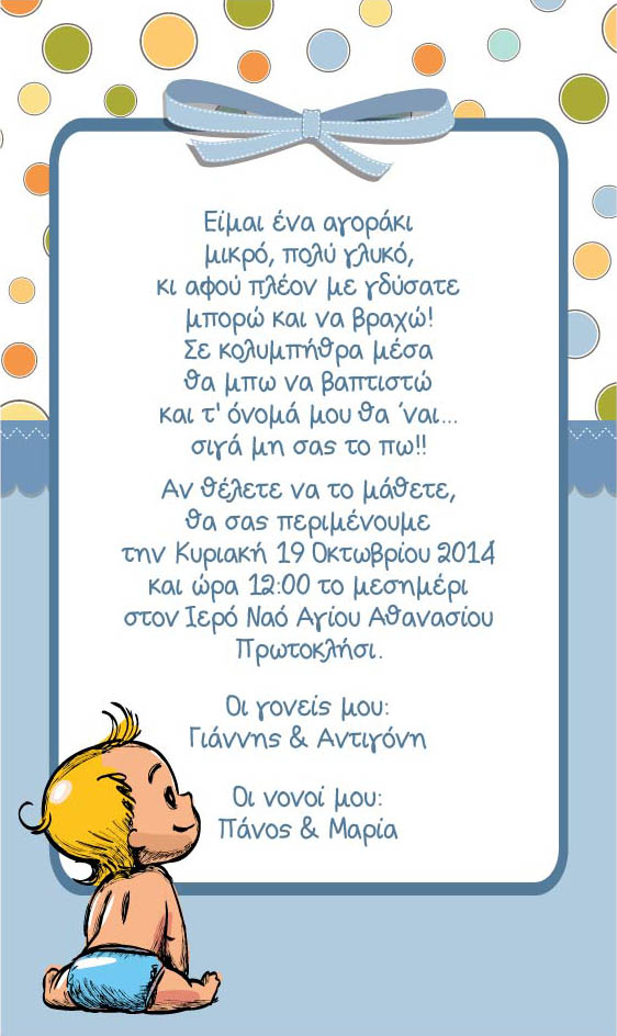 - Στοιχεία Προσκλητηρίου: Στo πεδίο με το κείμενο συμπληρώστε τα στοιχεία του προσκλητηρίου (κείμενο, ημερομηνία, εκκλησία, ονόματα, δεξίωση κλπ).