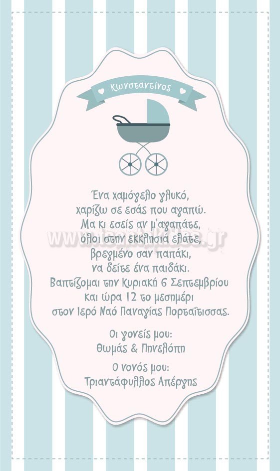 • Στοιχεία Προσκλητηρίου: Στo πεδίο με το κείμενο συμπληρώστε τα στοιχεία του προσκλητηρίου (κείμενο, ημερομηνία, εκκλησία, ονόματα, δεξίωση κλπ).