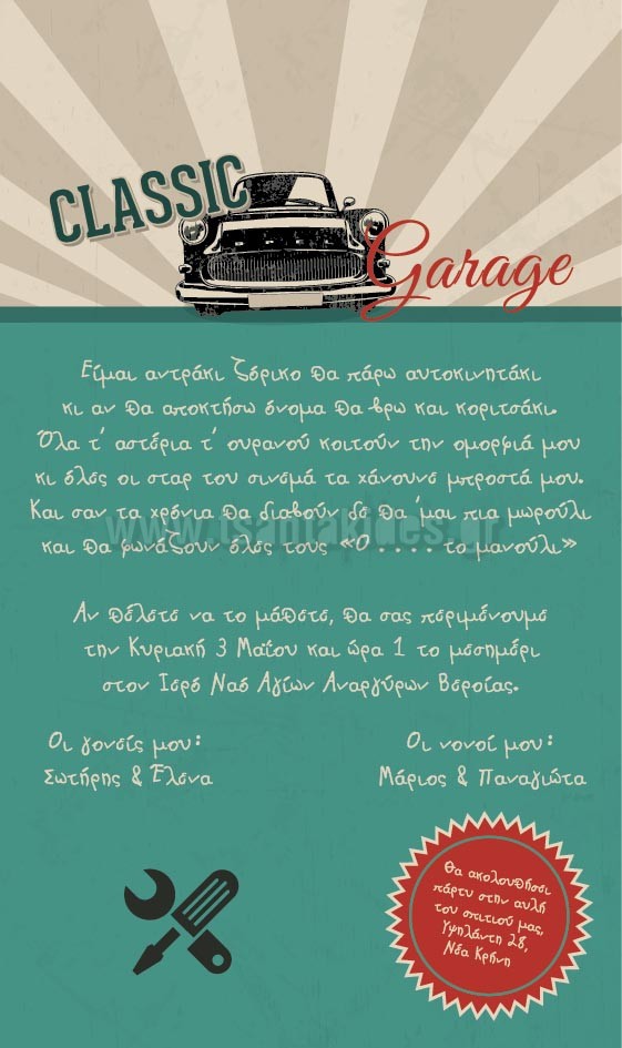 • Στοιχεία Προσκλητηρίου: Στo πεδίο με το κείμενο συμπληρώστε τα στοιχεία του προσκλητηρίου (κείμενο, ημερομηνία, εκκλησία, ονόματα, δεξίωση κλπ).