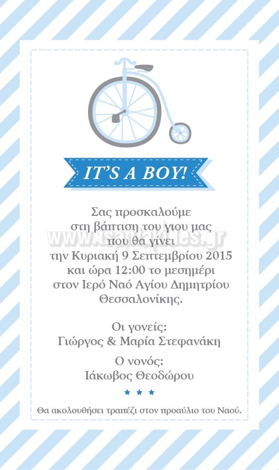 Προσκλητήριο Βάπτισης ΒΑ-5061 Ποδήλατο