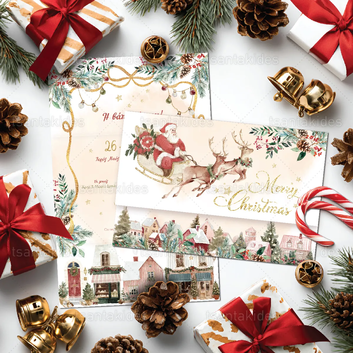 Προσκλητήριο βάπτισης εκτυπωμένο με θέμα Classic Christmas