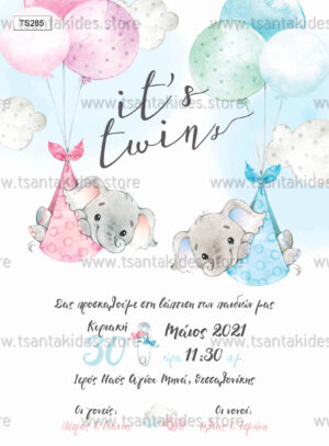 Προσκλητήριο βάπτισης για δίδυμα με θέμα Sleeping Babies.