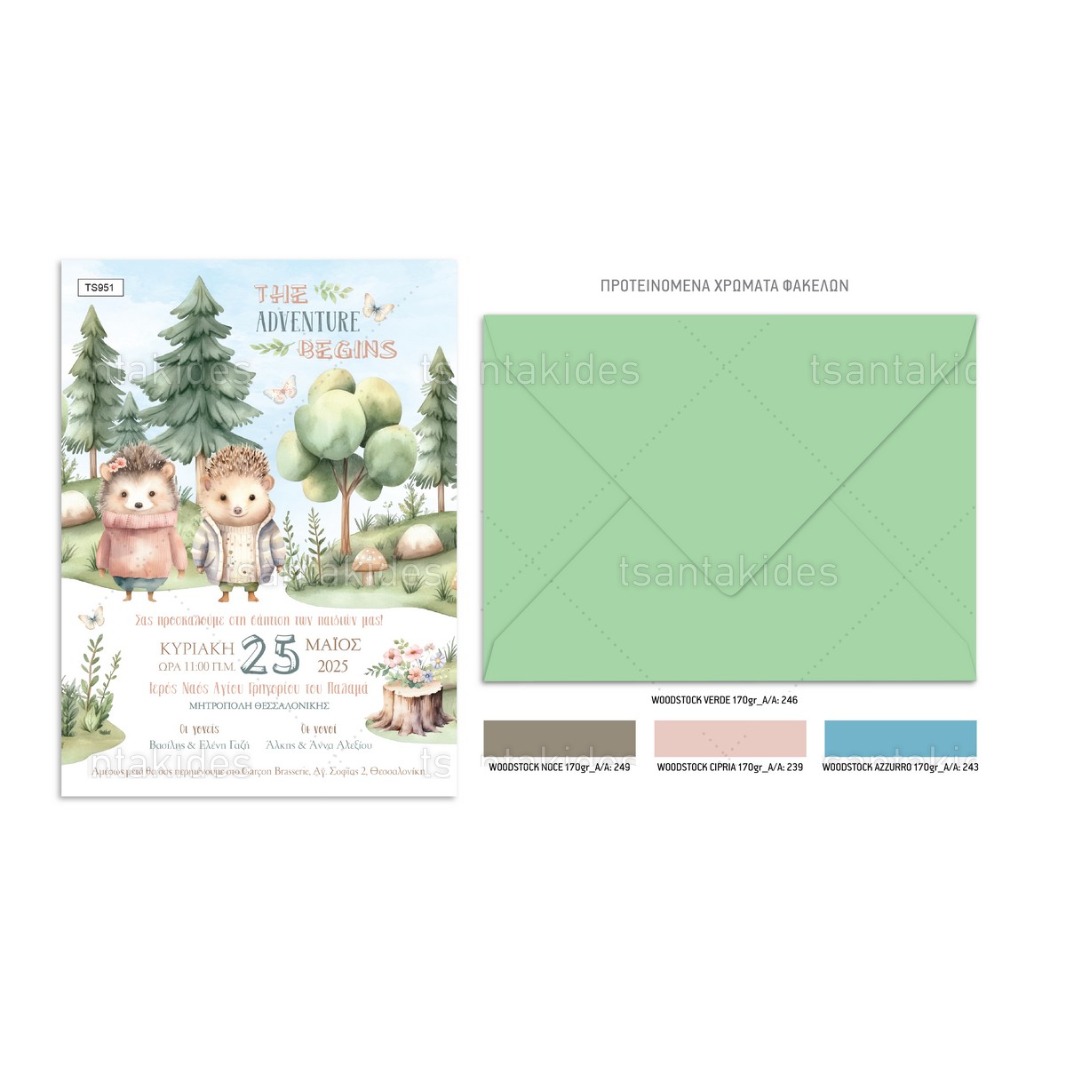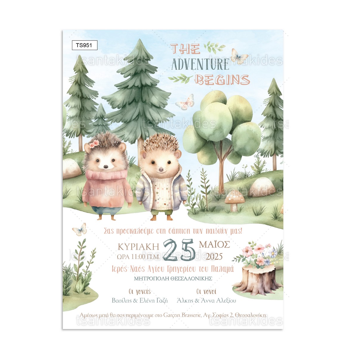 Προσκλητήριο βάπτισης Twin Σκαντζοχοιράκια.