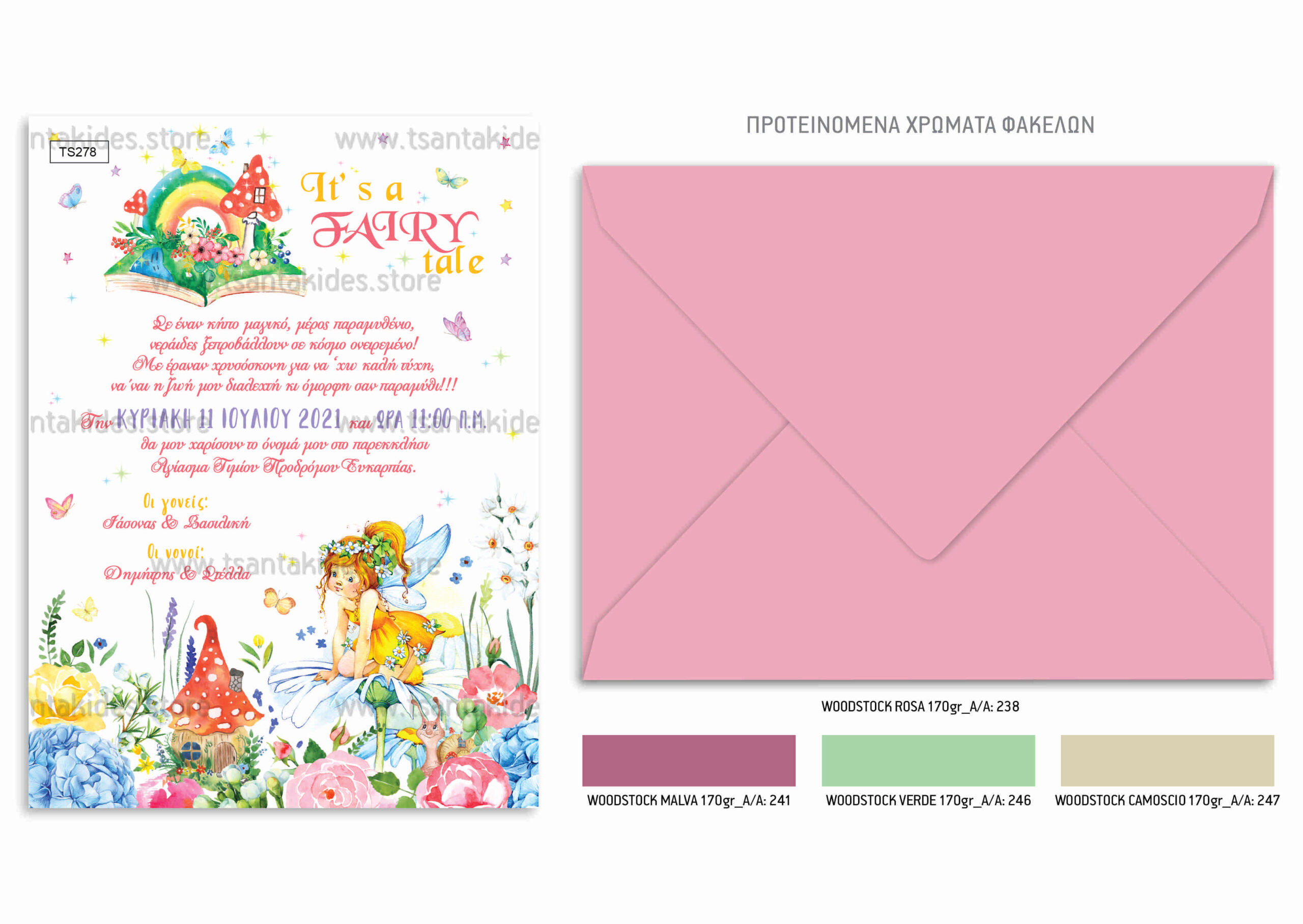 Προσκλητήριο βάπτισης για κορίτσι με θέμα τη νεράιδα στο μαγεμένο δάσος.