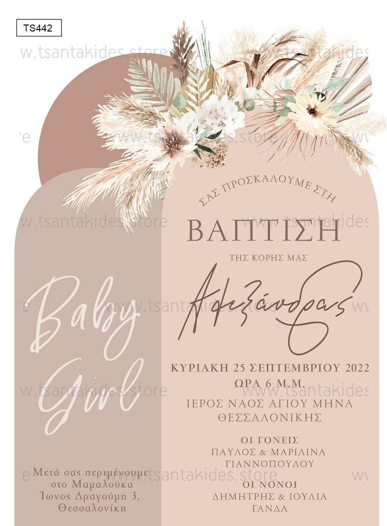 Προσκλητήριο βάπτισης για κορίτσι με θέμα Baby Boho.