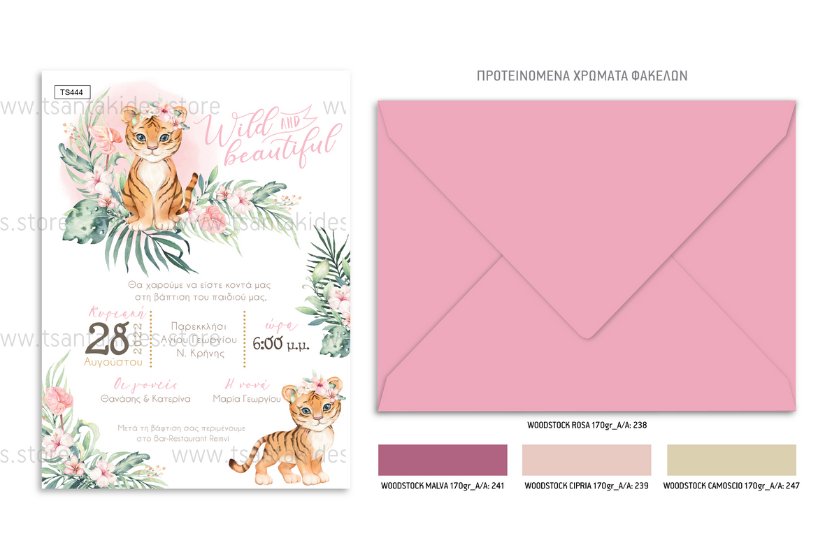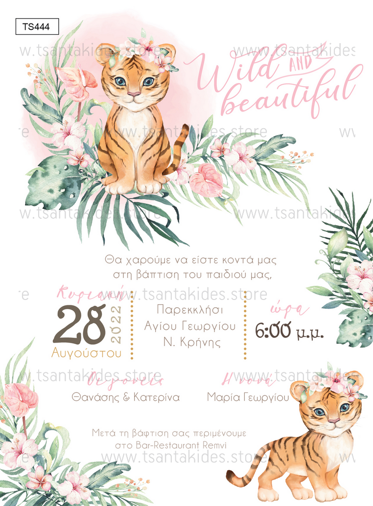 Προσκλητήριο βάπτισης για κορίτσι με θέμα Baby Girl Tiger.