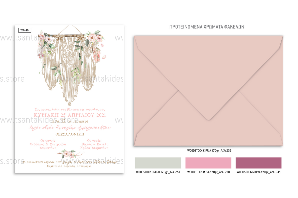Προσκλητήριο βάπτισης για κορίτσι με θέμα Boho Macrame.