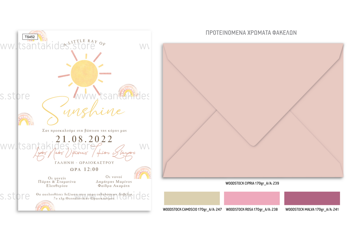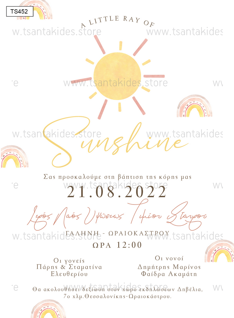 Προσκλητήριο βάπτισης για κορίτσι με θέμα Sunshine.