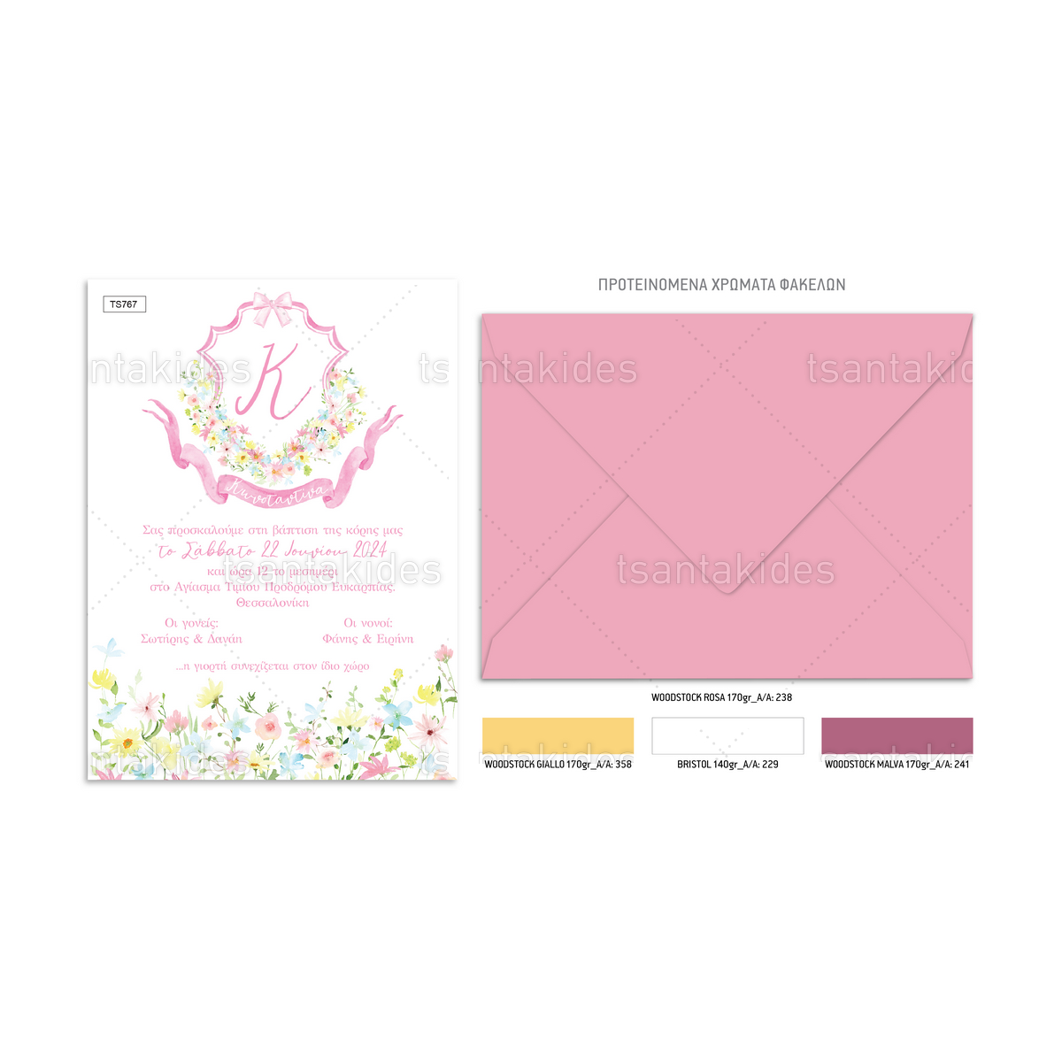 - Στολισμός (προαιρετικός): 2 κορδέλες σατέν 3χιλ. ή 1 κορδέλα σατέν 2-2,5εκ στα χρώματα του προσκλητηρίου. Δείτε τις κορδέλες εδώ. Υπάρχει η δυνατότητα αντικατάστασης των υλικών στολισμού με αυτά της επιλογής σας, από τον κατάλογο μας, κατόπιν συνεννόησης. Δείτε τον κατάλογο μας εδώ. Στα παπυράκια και τα μονόκαρτα συμπεριλαμβάνεται και καρτελάκι για να γράψετε τα ονόματα των καλεσμένων σας.