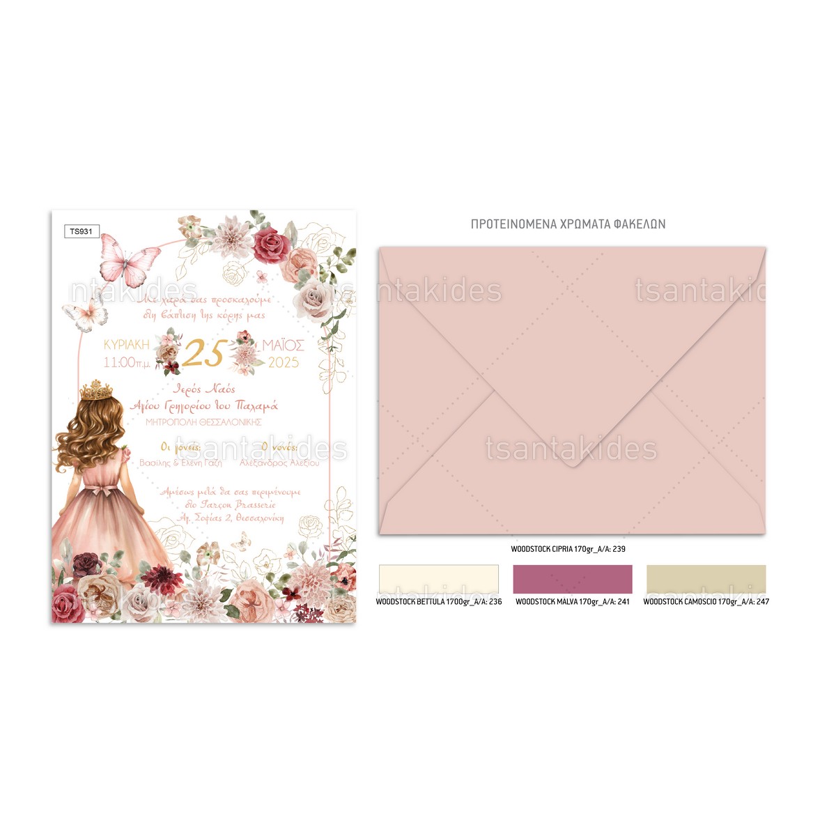 - Στολισμός (προαιρετικός): 2 κορδέλες σατέν 3χιλ. ή 1 κορδέλα σατέν 2-2,5εκ στα χρώματα του προσκλητηρίου. Δείτε τις κορδέλες εδώ. Υπάρχει η δυνατότητα αντικατάστασης των υλικών στολισμού με αυτά της επιλογής σας, από τον κατάλογο μας, κατόπιν συνεννόησης. Δείτε τον κατάλογο μας εδώ. Στα παπυράκια και τα μονόκαρτα συμπεριλαμβάνεται και καρτελάκι για να γράψετε τα ονόματα των καλεσμένων σας.