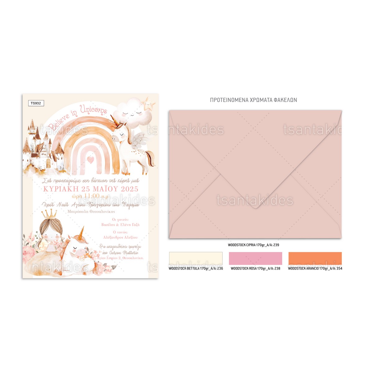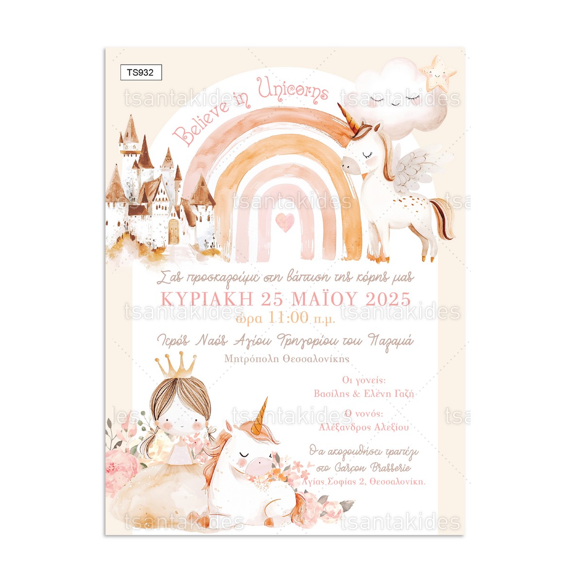 Προσκλητήριο βάπτισης Unicorn.