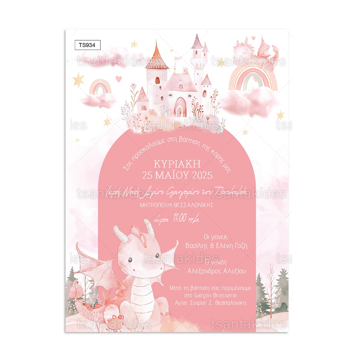 Προσκλητήριο βάπτισης Pink Dragons.
