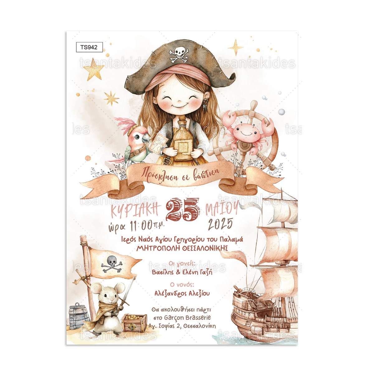 Προσκλητήριο βάπτισης Pirate Girl.
