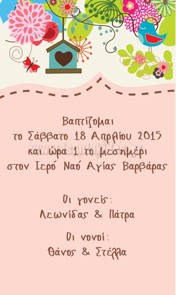 Προσκλητήριο Βάπτισης ΒΚ-6038 Πουλάκια