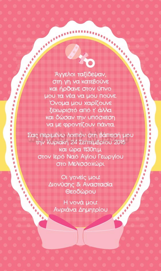 - Στοιχεία Προσκλητηρίου: Στo πεδίο με το κείμενο συμπληρώστε τα στοιχεία του προσκλητηρίου (κείμενο, ημερομηνία, εκκλησία, ονόματα, δεξίωση κλπ).