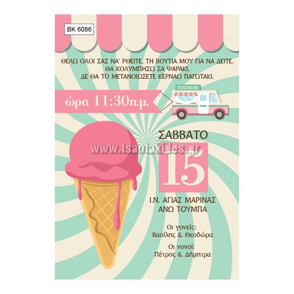 Προσκλητήριο Βάπτισης ΒΚ-6086 Παγωτό