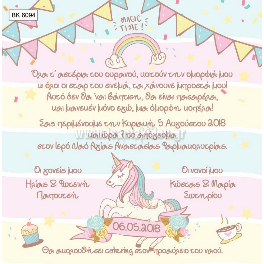 Προσκλητήριο Βάπτισης ΒΚ-6094 Μονόκερος