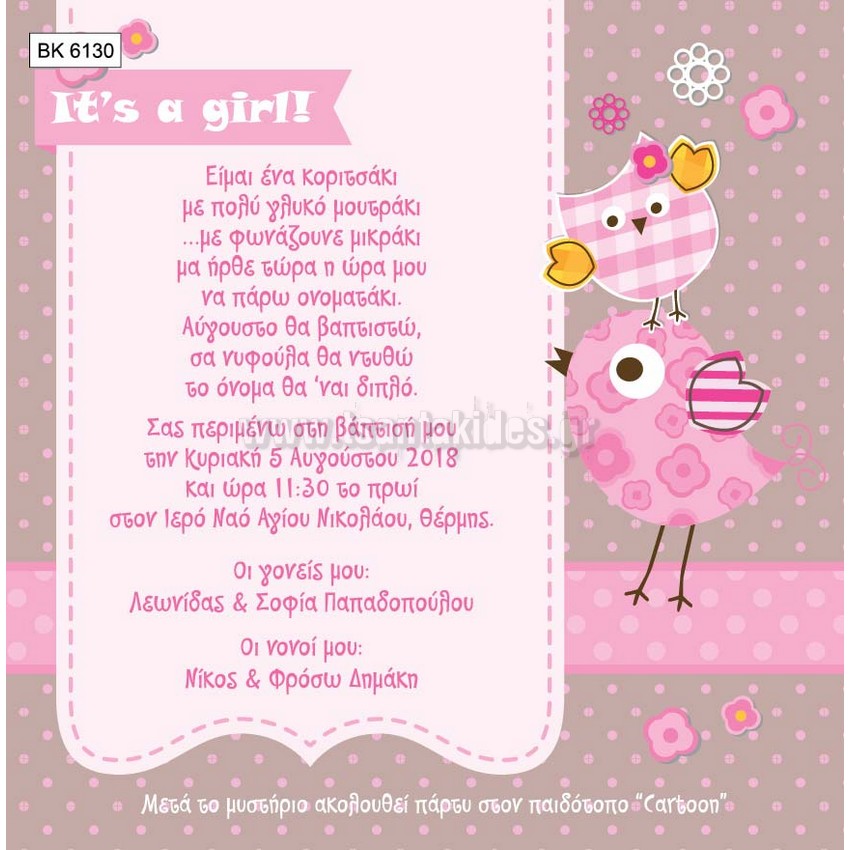 Προσκλητήριο Βάπτισης ΒΚ-6130 Πουλάκια